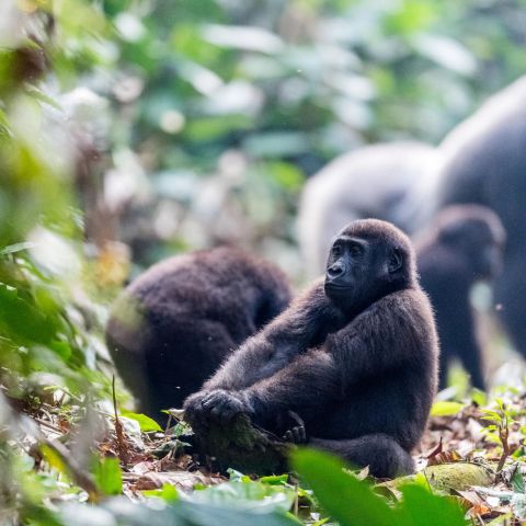 This vast, wild region, with its wide range of landscapes, is home to an incredible diversity of life. It holds globally significant populations of Western Lowland gorilla and Forest elephant as well as a plethora of other species: 430 bird species and more than 100 mammal species of which around 50 are classified as medium- or large-sized. It has the highest number (11) of diurnal primates for any forest block in central Africa, as well as central Africa’s highest density of chimpanzees.