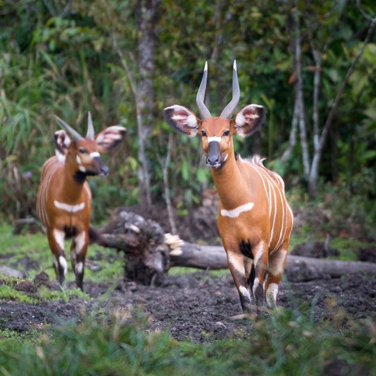 A primary feature is the occurrence of “bais” or salines. These are swampy, grassy clearings in the otherwise dense thickets that forest wildlife visit on a regular basis to drink, feed on sedges and grasses, and obtain minerals and salts. These bais range in size from less than a hectare to more than 10 hectares and represent the best chance of seeing forest wildlife. In Odzala-Kokoua it is best to visit the selection of relatively small bias as they offer the best opportunity for close up viewing of various species.