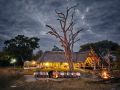The camp’s open-air thatched lodge overlooks a bustling waterhole where wildlife gathers throughout the day. Whether enjoying an al fresco breakfast as zebras graze nearby or sipping sundowners while elephants and giraffes soak up the last light, every moment feels incredibly special.