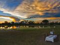 Accommodation includes elevated teak-platform tents with sweeping views of the vlei, ground-level tents near the waterhole, and a spacious family suite with private dining and lounge areas.