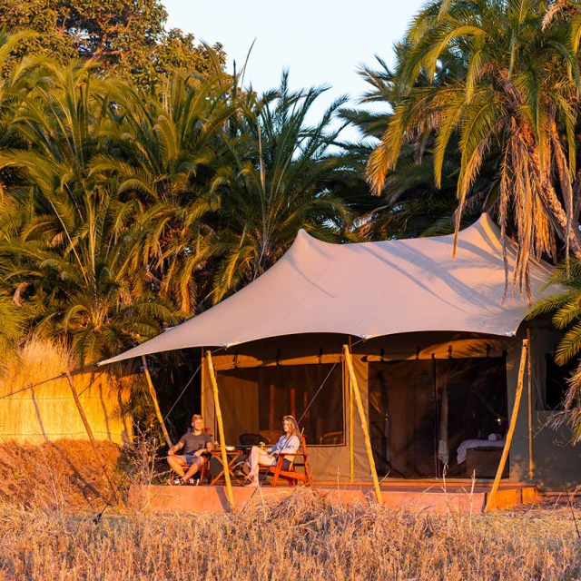 Spanning 720km² of vast floodplains, palm-dotted islands, and lily-covered lagoons, this seasonal camp immerses you in an ecosystem teeming with life.