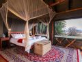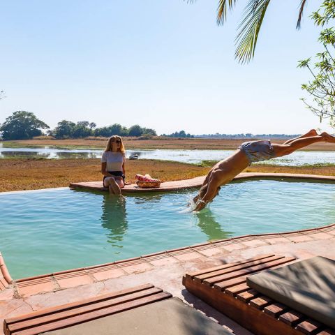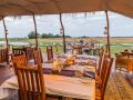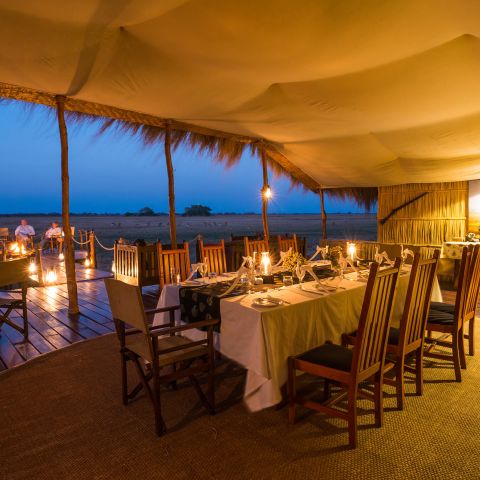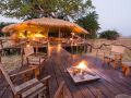 The raised boma and dining area provide a perfect vantage point, while a shaded wooden deck and plunge pool invite lazy afternoons in the heart of the bush. For a breathtaking perspective, climb up to the viewing platform nestled in a towering fig tree and take in the endless floodplain below.