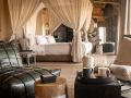On your private, expansive deck you'll find an inviting plunge pool for those hot, dry days as well as a wood-fired hot tub calling your name on a chilly winter's evening with a drink from the fully-stocked in-room bar. The deck is also host to a shaded sala with a king sized bed which can be made up for a night under the stars, or just an armchair safari if you fancy a lazy day.