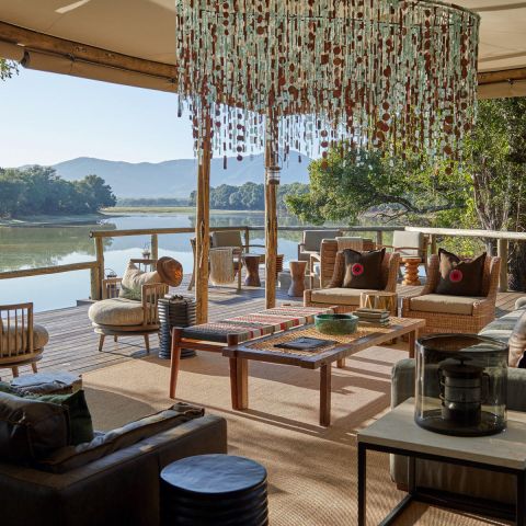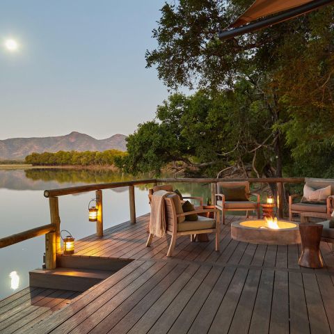 At Chindeni you can combine that thrill with style and comfort in one of its four opulent tents. Gaze out from your private veranda onto the lagoon which attracts birds and animals from miles around. Or settle back in the central lounge and dining area – a glorious expanse of varnished decking arranged on several levels around the surrounding ebony trees, boasting the same spectacular view of the serene lagoon and its inhabitants.
