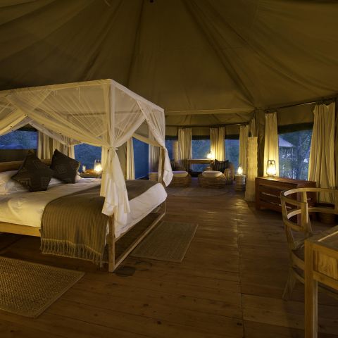 With stripped wooden floors, four-poster beds, cosy sitting areas, en suite bathrooms, and vaulted canvas ceilings, Chindeni’s spacious tents are so inviting that you could be forgiven for never wanting to leave your room. Especially when you can see so much wildlife just by stepping onto your own private deck jutting out over the lagoon