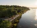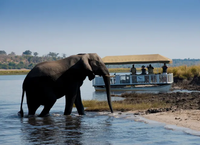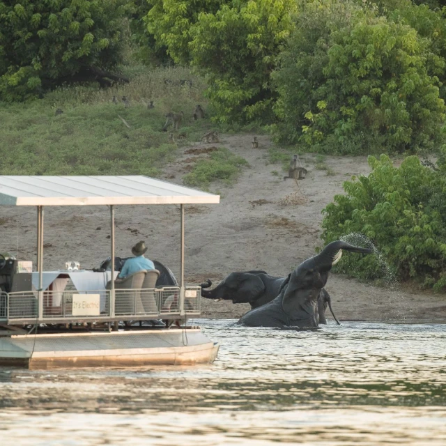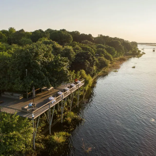 Other facilities include a large swimming pool with terrace, a riverside boma area, a fully equipped conference room, a stylish bar with an outside terrace and an expansive deck with magnificent views over the Chobe River. Meals are catered for at the terrace restaurant overlooking the Chobe River.