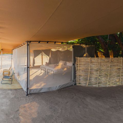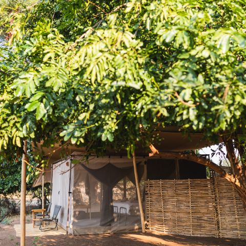 Just like its sister camp, Chula Island Camp is a charming tented bush-camp of just 5 tents, each situated to maximise its view. Furnishings are simple but comfortable, with open air bathrooms and bucket showers.