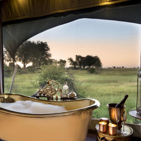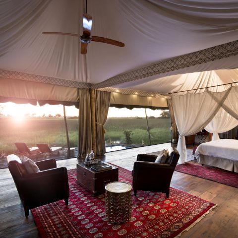Duba Plains Camp sits in the heart of Botswana’s Okavango Delta, a vast 77,000-acre private reserve known for its breathtaking landscapes of floodplains, islands, and woodland.