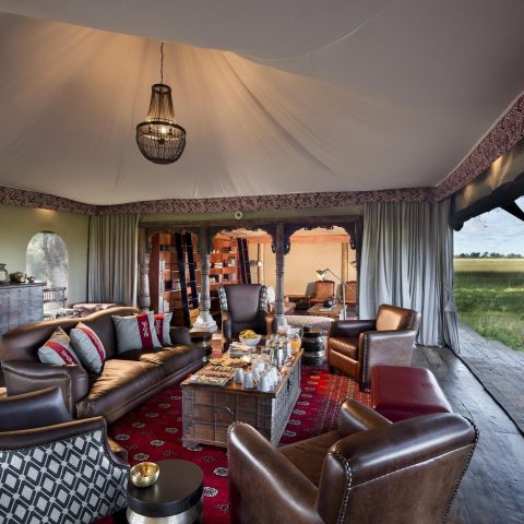 The main area includes a raised dining room, lounge, wine cellar, and library, providing space to connect or unwind. The Duba Plains Suite adds an extra layer of exclusivity with its own private game vehicle, guide, chef, and butler.
