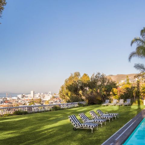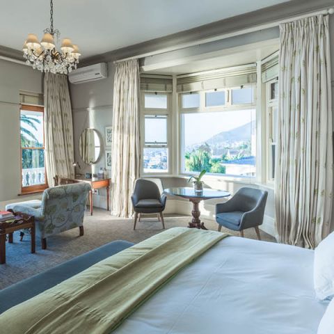 Originally a private residence, the historic Cape Edwardian-style mansion features shaded verandas and terraced indigenous gardens overlooking the ocean. There are 13 individually decorated rooms and suites complemented by two ultra-modern villas.
