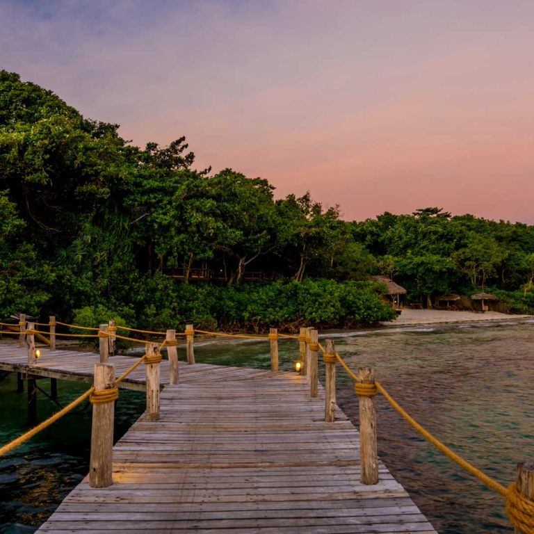 Living up to the ‘Spice Islands’ nickname, cloves form a major part of the local economy. Magic is also embedded in the culture, with ju-ju witch doctors providing medicine and social cohesion. Only accessible by boat, the resort extends along a natural beach, where the lush jungle meets the sea.