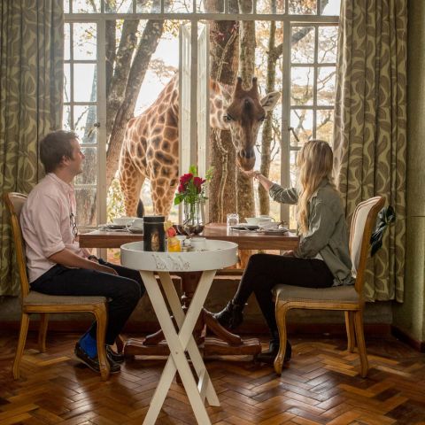 Located in the leafy suburbs of Langata on a 140 acre sanctuary, Giraffe Manor offers a unique opportunity to meet the resident giraffe, all of whom are of the endangered Rothschild species.