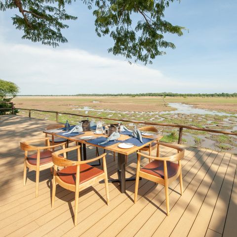 Central to the lodge is a spacious bar and dining area. Built around a semi-evergreen wild mango tree and thatched in the traditional style, it offers superb panoramic views over the Luangwa River and the South Luangwa National Park. Great game viewing and bird watching from the lodge is guaranteed.