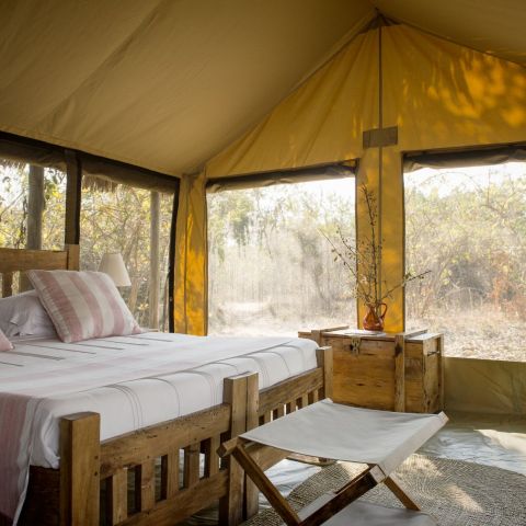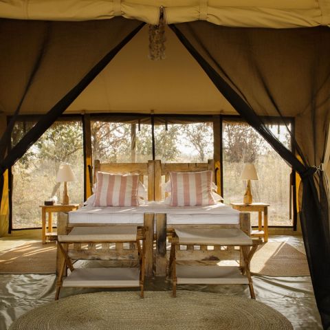 The camp itself has just six airy tents set beneath the boughs of the Sausage Tree (Kigelia Africana) after which it was named. It has a charm and simplicity which, for us, means that it highlights the surrounding landscape rather than detracts from it. Falling asleep under canvas to the calls of leopard, and waking in the dappled light of the sun as it peers through the bush is simply magic.