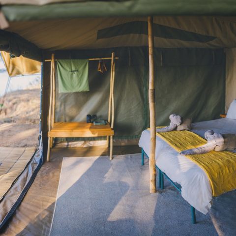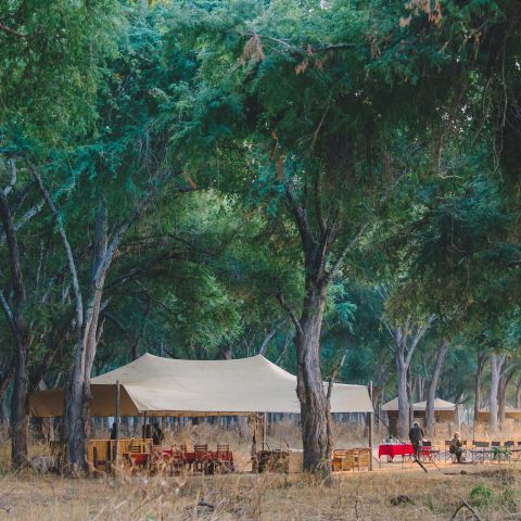 The Kutali tents are bespoke and very comfortable, with high quality linen and mattresses, alongside flushing toilets, running water taps and traditional bucket-showers! A main area stretch-canvas tent set beneath the towering Winterthorn trees makes for an exceptional location for meals, reading, charging cameras and wildlife watching.
