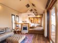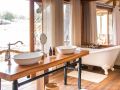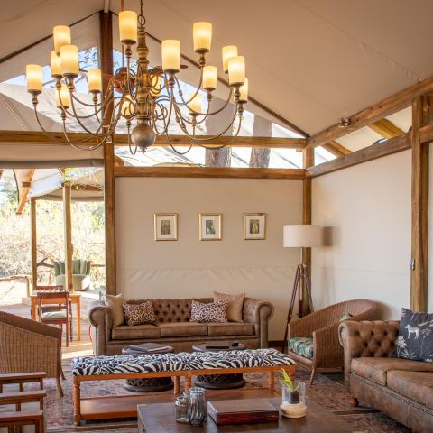 The communal area at the centre of the camp consists of the dining area, lounge, and safari shop, with two swimming pool areas (with loungers and a small bar) at either end of the camp.