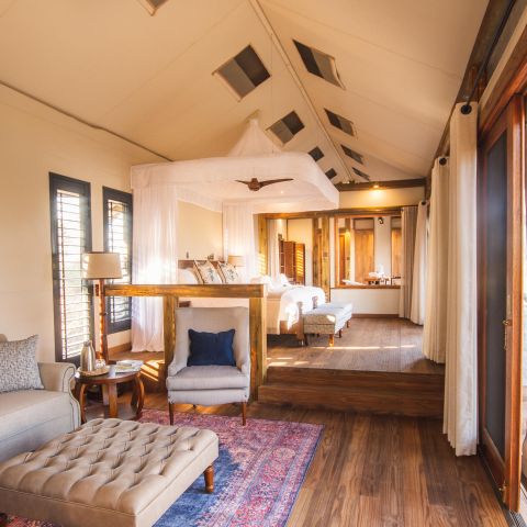 Lion, cheetah, and leopard are often sighted, herds of elephants frequent the area, as well as giraffes, zebra, lechwe, impala and hippos. Explore this wealth of wildlife from the adult only Kwara Camp with nine bright and spacious suites. Each tent has a spacious deck, an en-suite bathroom with indoor and outdoor showers and a beautiful bath – all of which have views across the floodplains.