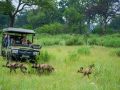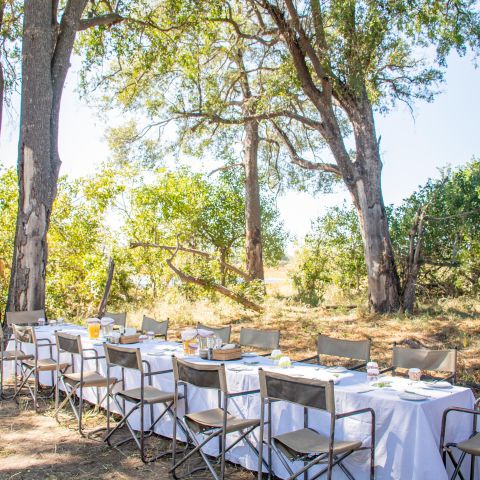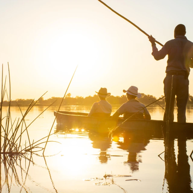 Kwara offers five activities all year, with no seasonal restrictions: walking safaris, offroad game drives morning, afternoon and night, motorboat and mokoro trips, plus seasonal fishing. The double-decker boat experience grants views across papyrus-lined channels to scan for birds and the shy sitatunga. The Godikwe Lagoon is a favourite seasonal highlight, which abounds with life during the heronry breeding season.