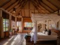 4 deluxe bandas with iron-sheet or thatch roofs, all with a private balcony offering spectacular views of the park. All rooms are complete with en-suite bathrooms with flushing toilet, double vanity and shower with hot & cold running water. All bandas have mosquito nets, 240V lighting, charging stations and a private balcony.