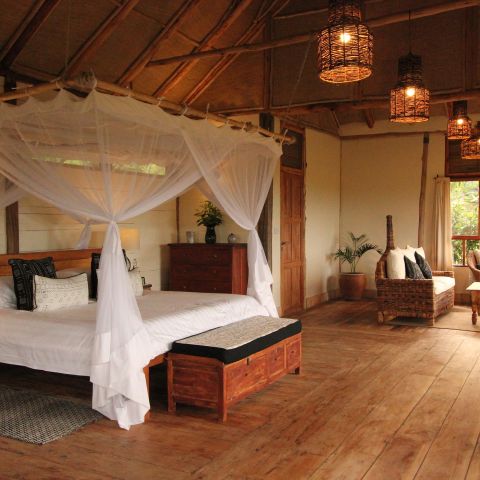 Ten elegant hand built guest bandas facing either the savannah or Kyambura gorge (Four deluxe and four standard rooms).