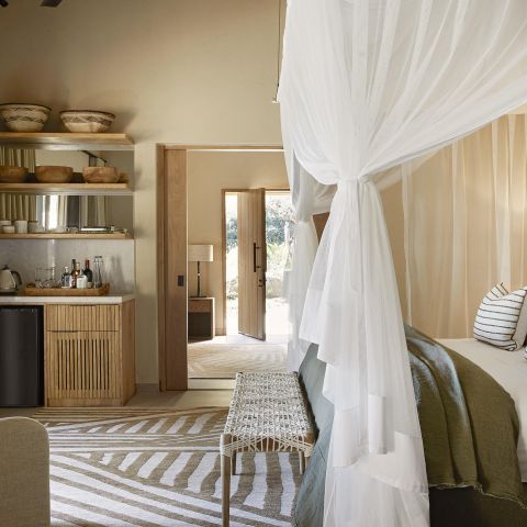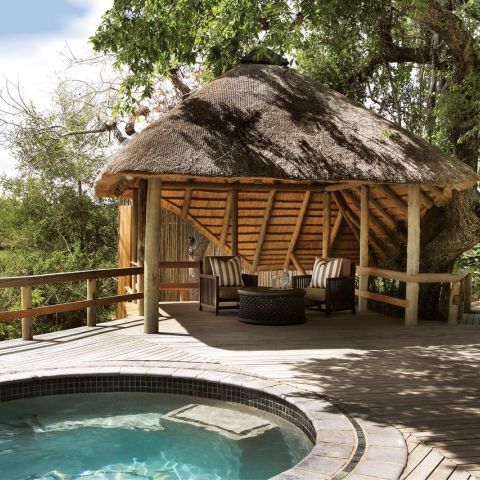 This is safari in the classic style, replete with classic black and cream ticking fabric and original mahogany beds. Deep leather couches, military chests, compass safari lamps and a riverside lounge sala, create a mood of easy luxury and laid back welcome for discerning families and travellers.