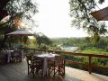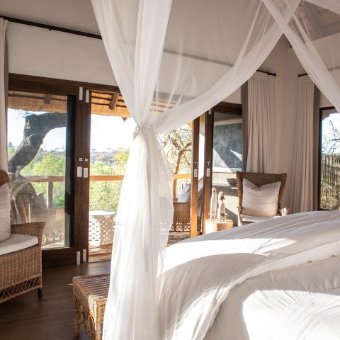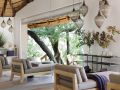 Nestled along the banks of the Sand River, Varty Camp offers a blend of natural beauty and comfort, with brick pathways, dolerite rock walls, and cascading waterfalls creating an atmosphere of understated elegance.