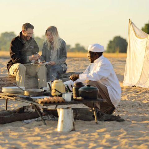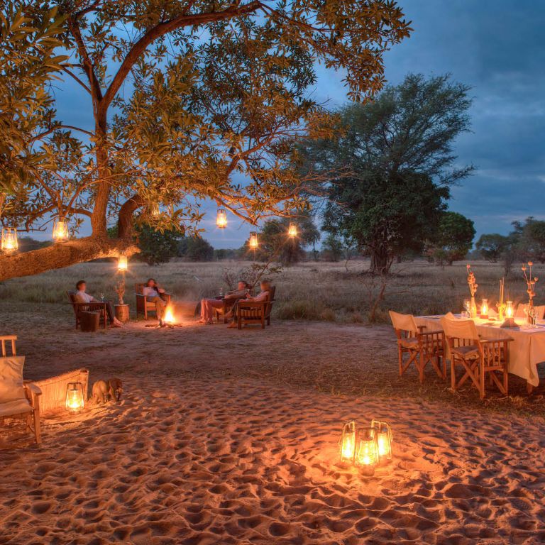 Wake up with the sun, enjoy your morning coffee by the campfire, and head out on foot in search of elusive wildlife like roan antelope, eland, and wild dogs. At night, the calls of lions and hyenas fill the air, reminding you of the untamed wilderness surrounding you.