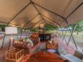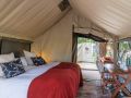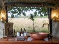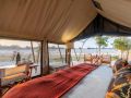 Nestled under ancient mahogany trees, the camp’s tented suites immerse you in the full bush experience, with open-air lounges overlooking grassy floodplains teeming with wildlife. As you relax, the sounds of hippos and the scent of African jasmine create a serene atmosphere.