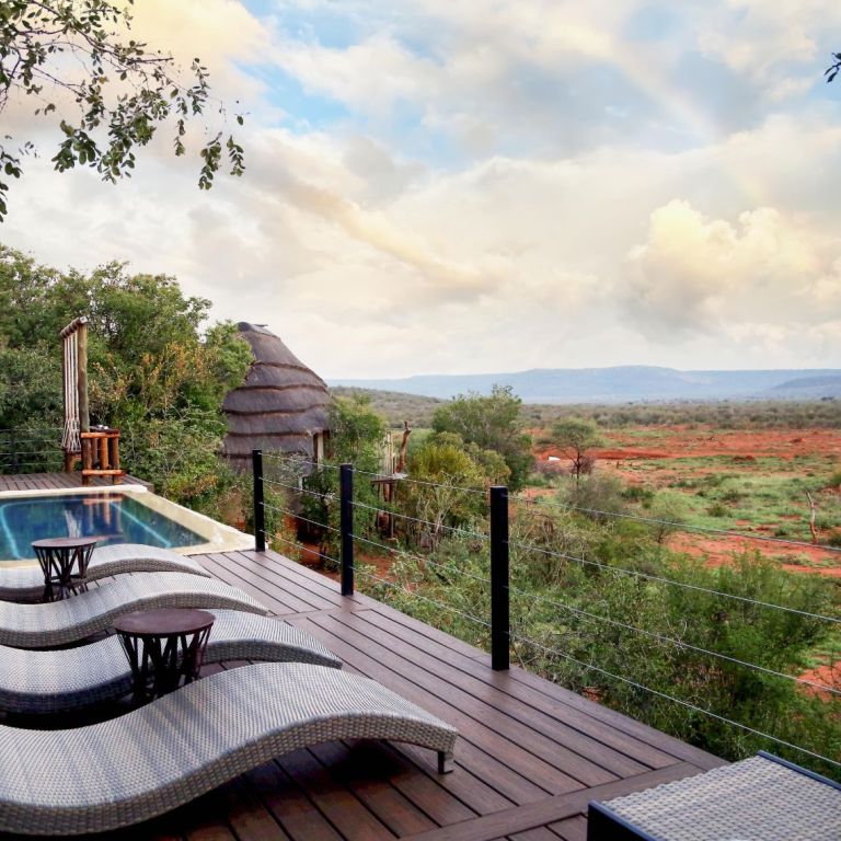 Traversing over 75 000 hectares, Madikwe Hills Private Game Lodge is situated on a hill, in the heart of the malaria-free Madikwe Game Reserve. Ingeniously set amongst boulders and age-old Tamboti trees, the lodge offers visitors the utmost in luxury and hospitality, where you will find yourself enchanted by a world of intrigue and majestic beauty.