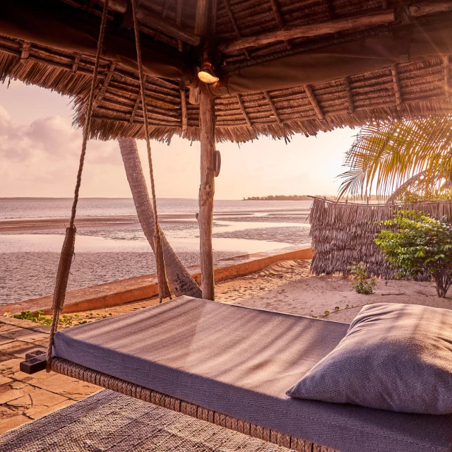Each of Manda Bay’s rooms is thoughtfully crafted from locally sourced materials, echoing the natural beauty of the landscape. The rooms are simple yet comfortable, with palm-woven matting floors, palm thatching, and open-air windows that invite the sea breeze. Oversized walk-in mosquito nets, overhead fans, and verandahs with swing beds add to the relaxed charm.