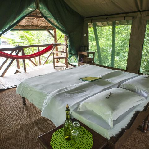 Accessible only by foot or boat, the lodge offers unmatched tranquillity with just seven palm-thatched treehouses elevated on stilted wooden platforms. Each treehouse provides breathtaking views of the forest and ocean, blending traditional Betsimisaraka architecture with modern eco-friendly designs.