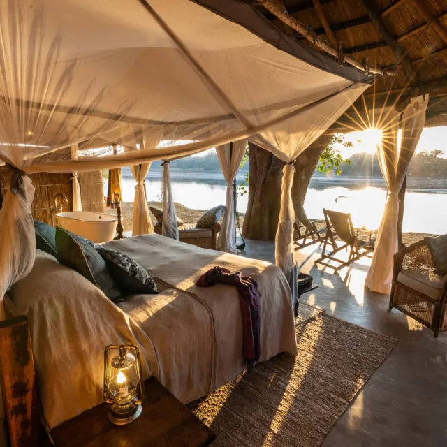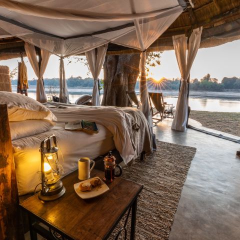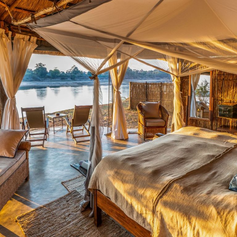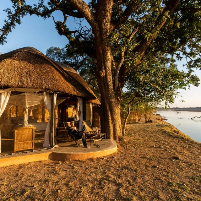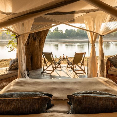 Set in a grove of magnificent ebony trees, Mchenja (meaning ebony) is a luxurious, elegant and stylish tented camp overlooking a huge sweeping bend in the Luangwa.