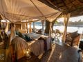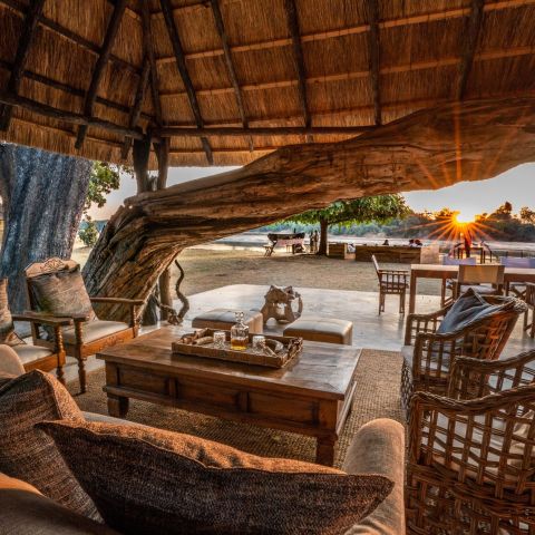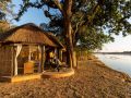 The beautiful central chitenje (lounge) is built around one of the old fallen Mchenja trees and lunch is taken in the shady lounge but dinner is more often served on the river bank under the stars.