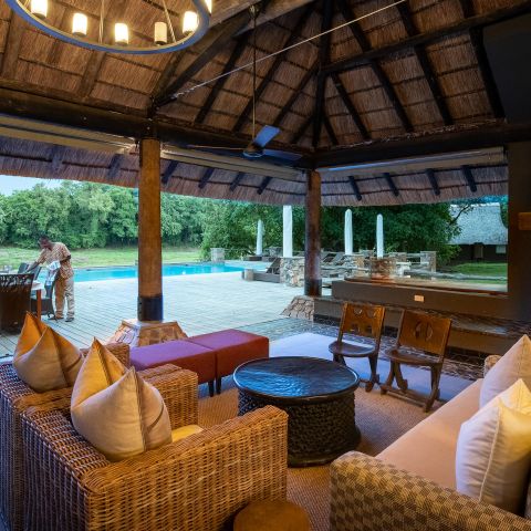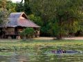 Beneath a canopy of ebony and mahogany trees, its thatched buildings are arranged around the banks of two lagoons where an endless stream of wildlife will keep you enthralled as you lounge on the open deck or take a dip in the swimming pool. The airy interior of the lodge is an exquisite complement to its natural surroundings.