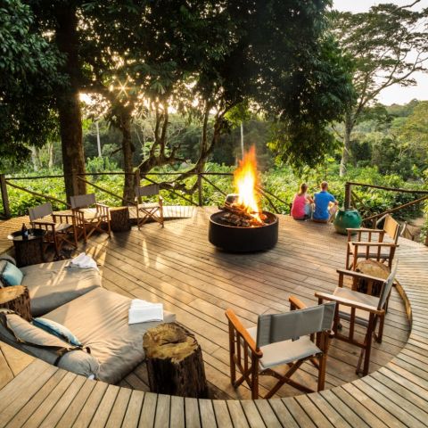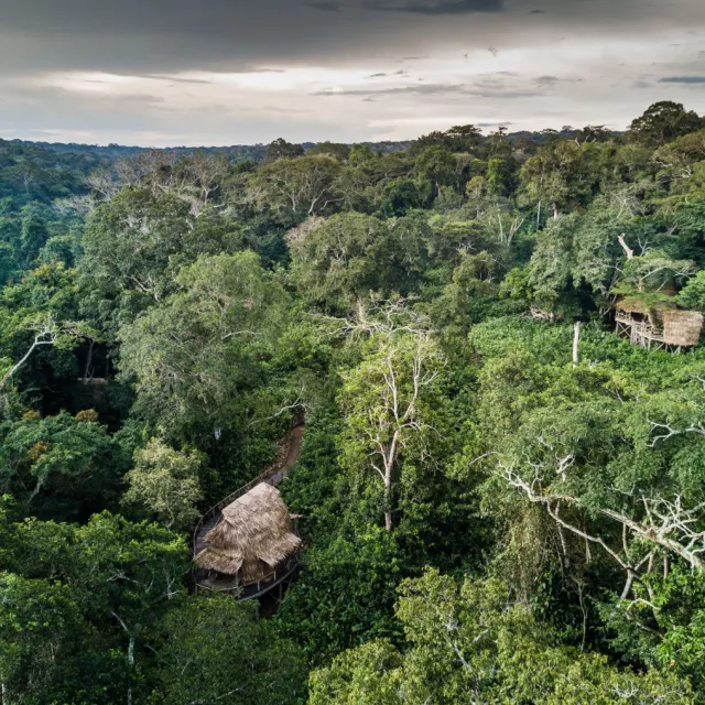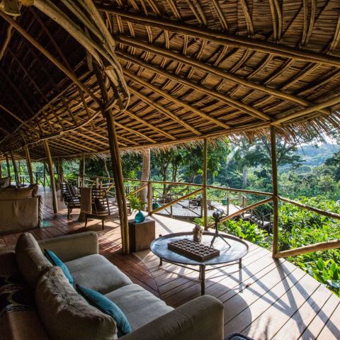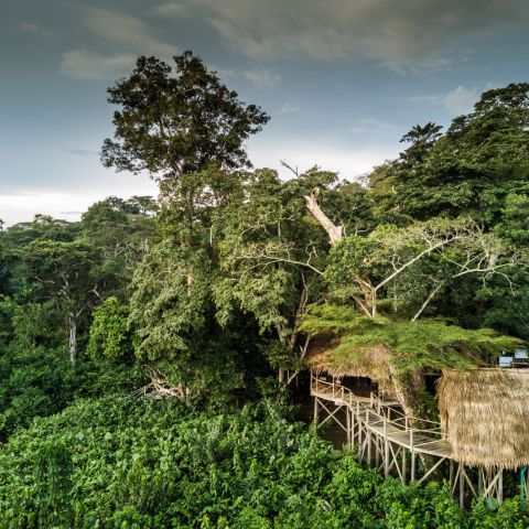 Ngaga is truly gorilla central. A focal point for world-class research as well as unforgettable primate encounters, Ngaga Camp’s unique design evokes the fun and mystery of childhood treehouses. From the six elevated guest rooms, wraparound walkways allow you to peer directly into the forest canopy. Ngaga is constructed from natural materials using traditional techniques allowing it to blend seamlessly into its surroundings.