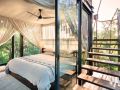 The treehouse features two sleep levels including a covered and weatherproof space with a king-size bed, hot running shower and flushing toilets. An elevated sleep-out platform allows you to slumber al fresco under a retractable screen.