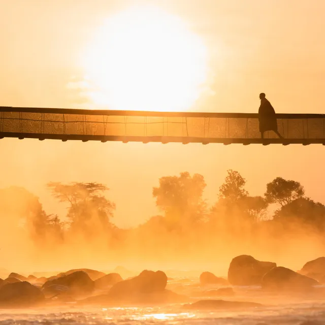 Hugging the banks of the Mara, Ngare Serian is cosy and intimate. It can only be reached on foot, over a narrow rope bridge – and in a way the crossover is symbolic: a call to step out of touch and out of time, and give yourself over to nature. There’s something special about being on the water’s edge – the water slipping over the stones sets a soothing soundtrack, but at the same time its energy and movement lend lightness and life – green shoots, verdant growth and glossy rocks that metamorphose into hippos.