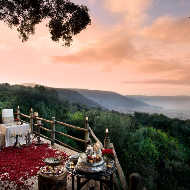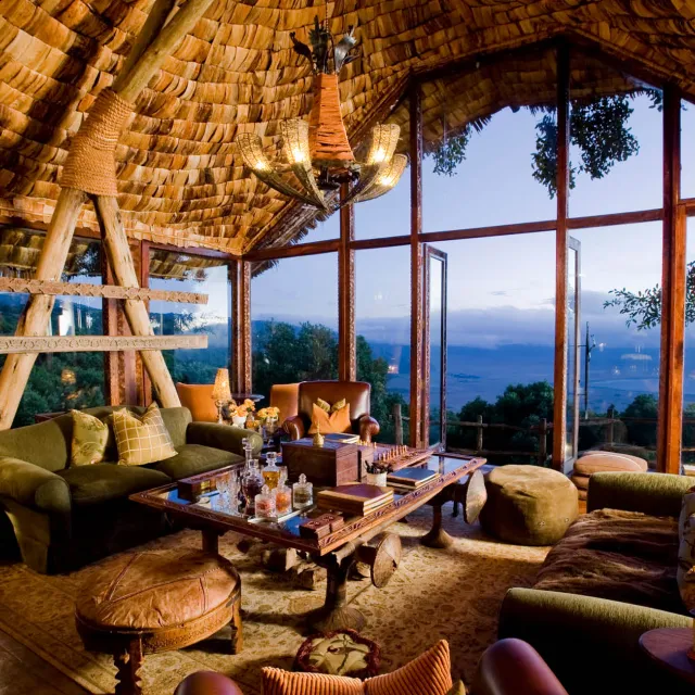 The Bandas are private and spread out on the grassland in front of the lodge on the Crater rim; and an array of whimsical African touches create a sumptuous atmosphere as elegant - and unique as the Crater itself.