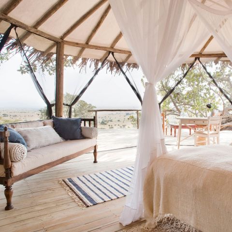 Lamai Serengeti sits tucked amongst the rocks of Kogakuria Kopje with panoramic views of the surrounding landscape, only a few miles from where the wildebeest cross the Mara River.