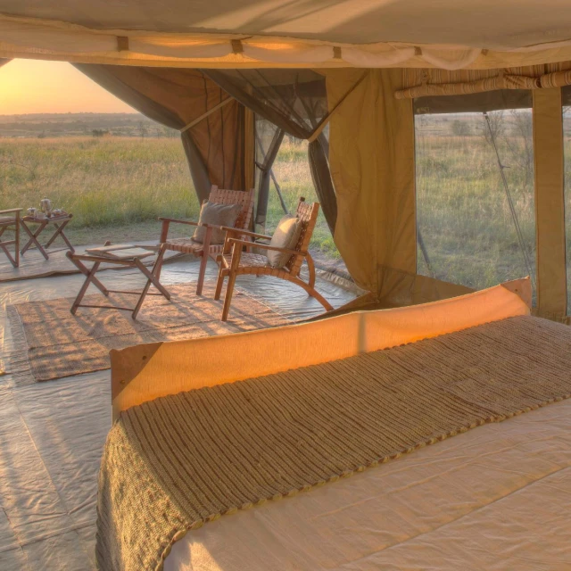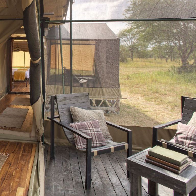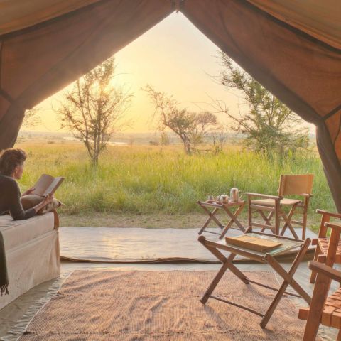 The mess and dining tents echo the style and ambience of the rooms, with panoramic views of the sprawling Serengeti plains. Spend the afternoon relaxing in an armchair in the mess area or get comfortable under the shade of the surrounding trees and simply watch the game pass by.