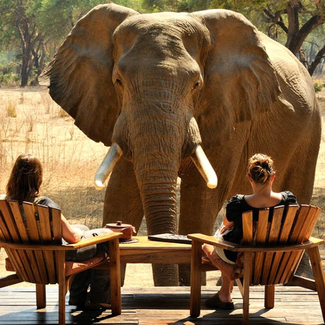 The comfortable rooms are strung out along a hippo-friendly channel off the Zambezi, enjoying great views with their half-height walls and timber decks. Activities at Old Mondoro focus on game drives, walks, canoeing and boating, though the elephant and hippo activity around camp are enough to encourage a lodge-based safari!
