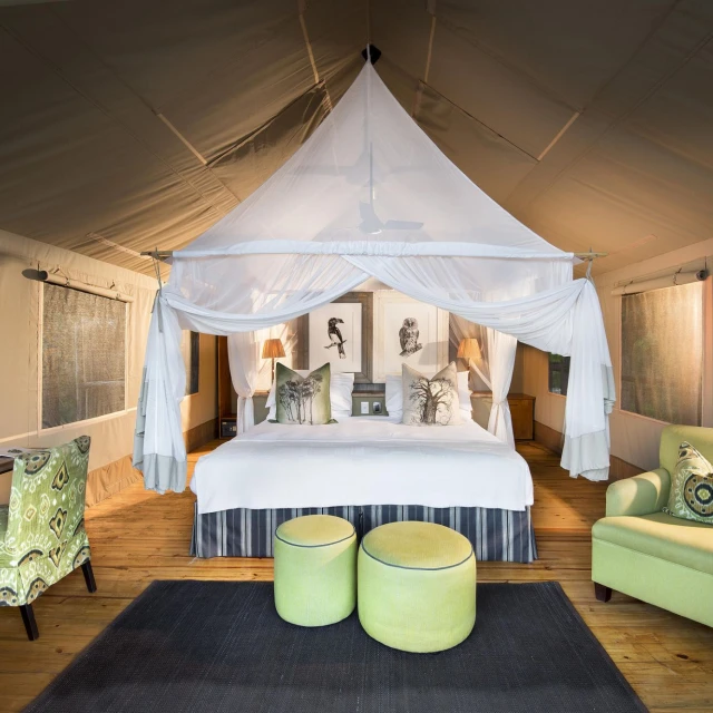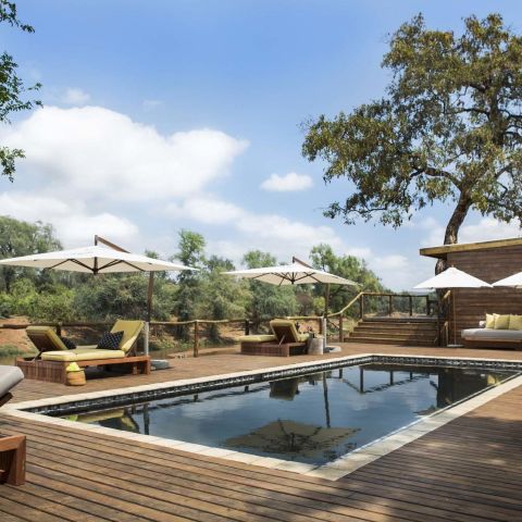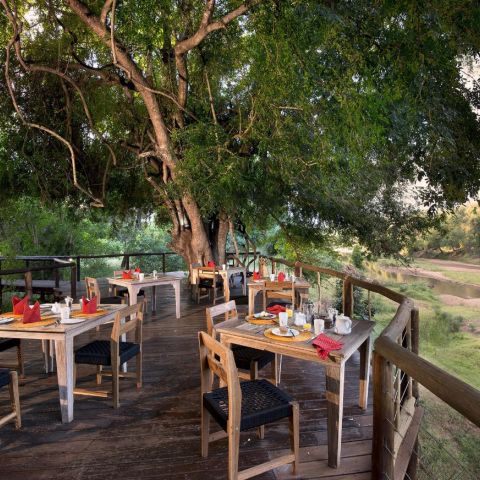 Pafuri Camp is RETURNAfrica’s flagship. Sheltered under thatch, the en-suite luxury tents – twelve for couples or singles and seven for families of up to four – all have sweeping views over the Luvuvhu. The communal area offers al-fresco dining, a bush bar, a swimming pool and plenty of space to laze about in the shade of the giant trees that overhang the camp. Breakfast, lunch, high tea and dinner are served on decks above the river.
