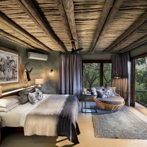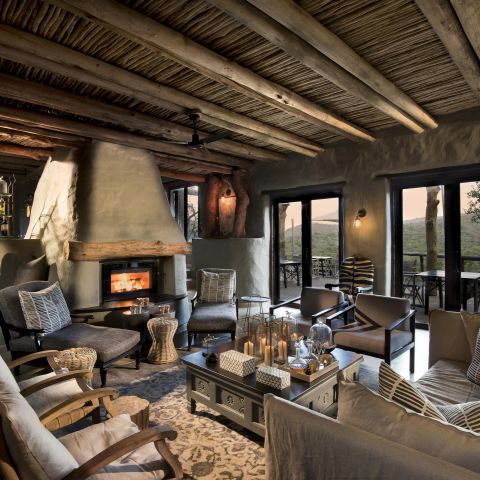 The lodge’s comfortable sitting areas are the perfect vantage point for viewing the abundant wildlife roaming the bushveld below.