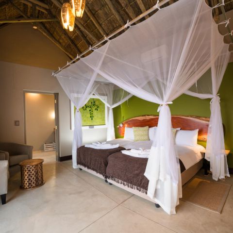 Luxury rooms at Safarihoek Lodge are spacious, modern and refreshing. All rooms are en-suite with an inside and outside shower. These rooms also feature a small wooden verandah allowing guests to enjoy the wildlife interactions and stunning panoramic landscape from the comfort of their room.
