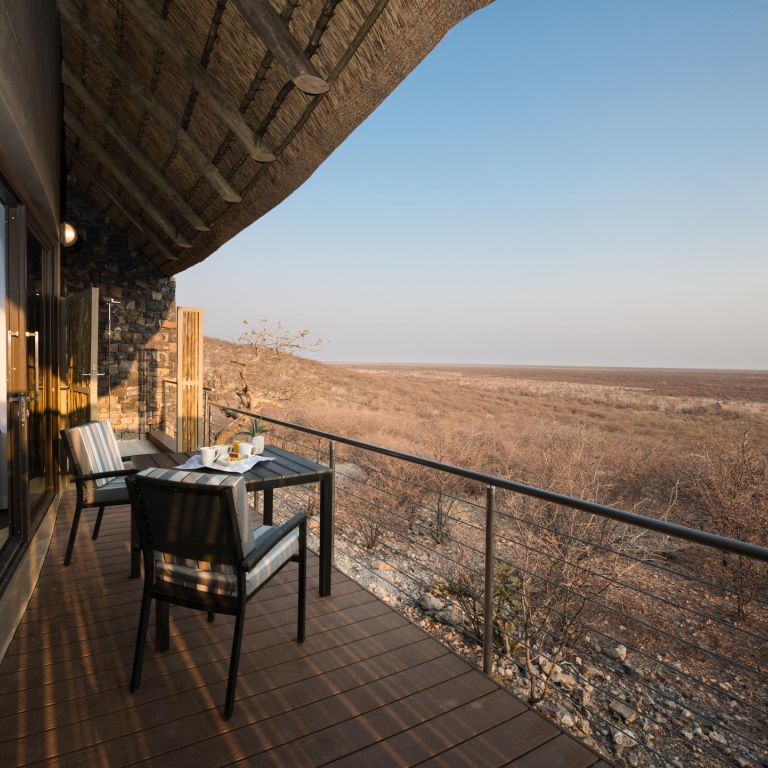 In the middle of northern Namibia’s arid, captivating savannah, bordering the world-famous Etosha National Park, is Safarihoek Lodge. Perched on top of a hill, overlooking the plains below, Safarihoek is a stylish sort of place, and you’ll find cool, thatched chalets all with private decks, a double-storey photography hide, and a swimming pool with 180-degree vistas of the brilliant savannah.
