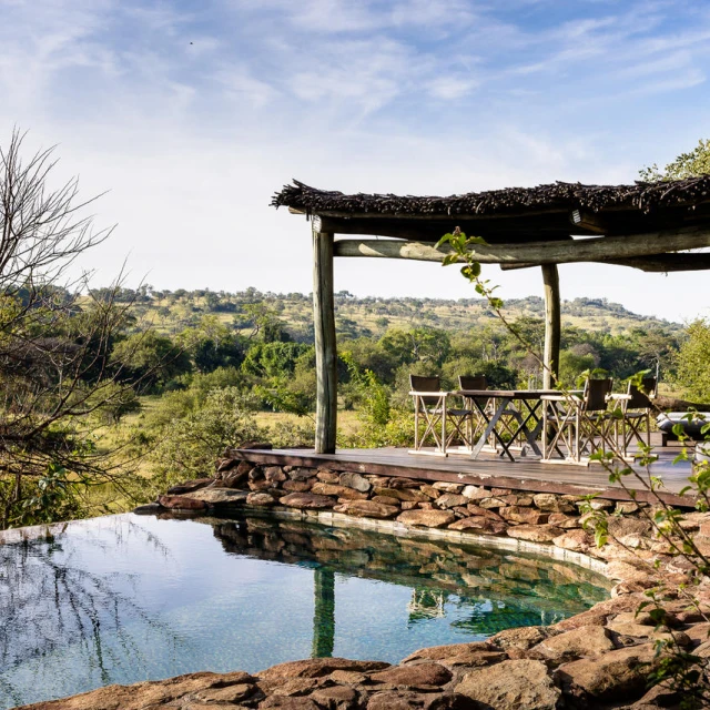 Faru Faru Lodge is built on a gently sloping hill above a beautiful waterhole and the Grumeti River. In the dry season, after the great herds have departed for greener pastures in the north, the Grumeti draws in large concentrations of resident wildlife.