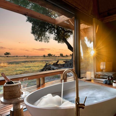 Opened in May 2024, Tawana was designed to integrate seamlessly with the lush forests and grasslands that border the banks of the perennial Gomoti River, combining the romance of a contemporary safari camp with amazing safari experiences.