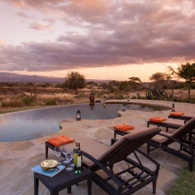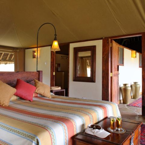 Accommodations are designed with comfort in mind, with king or twin beds and elegant ensuite bathrooms. Exclusive accommodations are available in the luxurious Private House and Family Tent, set separately to the main camp, each enjoying access to a shared private pool and stunning views to Kilimanjaro.