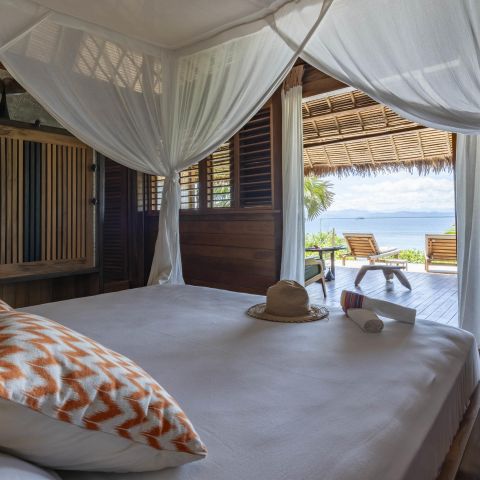 The eight luxury suites, all offering spectacular ocean views, are built with natural materials that harmonise with the landscape, creating an atmosphere of peace and privacy. Unwind on your private terrace, surrounded by the sounds and sights of Nosy Komba and the Nosy Be archipelago, truly immersed in the island’s serene beauty.