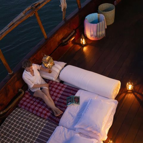 Tusitiri Dhow welcomes up to 10 guests for an overnight stay, where you’ll sleep under the stars with the gentle sound of the ocean around you. For day trips, the dhow can host up to 25 guests, making it perfect for intimate gatherings. Below deck, you’ll find open-air bathroom facilities and even Wi-Fi - combining simple comforts with the authentic charm of life on the water.